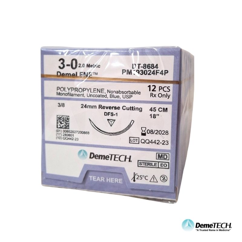 POLIPROPILENO 3-0 AGUJA REVERSO CORTANTE 24 MM 3/8 45 CM COLOR AZUL CAJA C/12