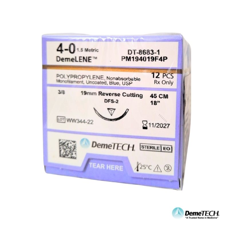POLIPROPILENO 4-0 AGUJA REVERSO CORTANTE 19 MM 3/8 45 CM COLOR AZUL CAJA C/12