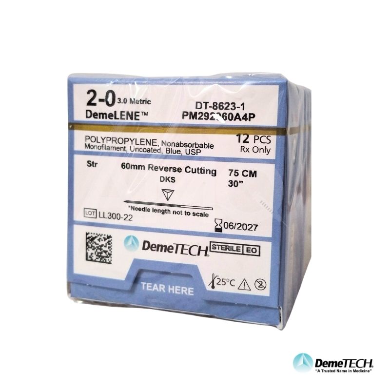 POLIPROPILENO 2-0 AGUJA RERVERSO CORTANTE 60 MM RECTA HEBRA DE 75 CM COLOR AZUL CAJA C/12