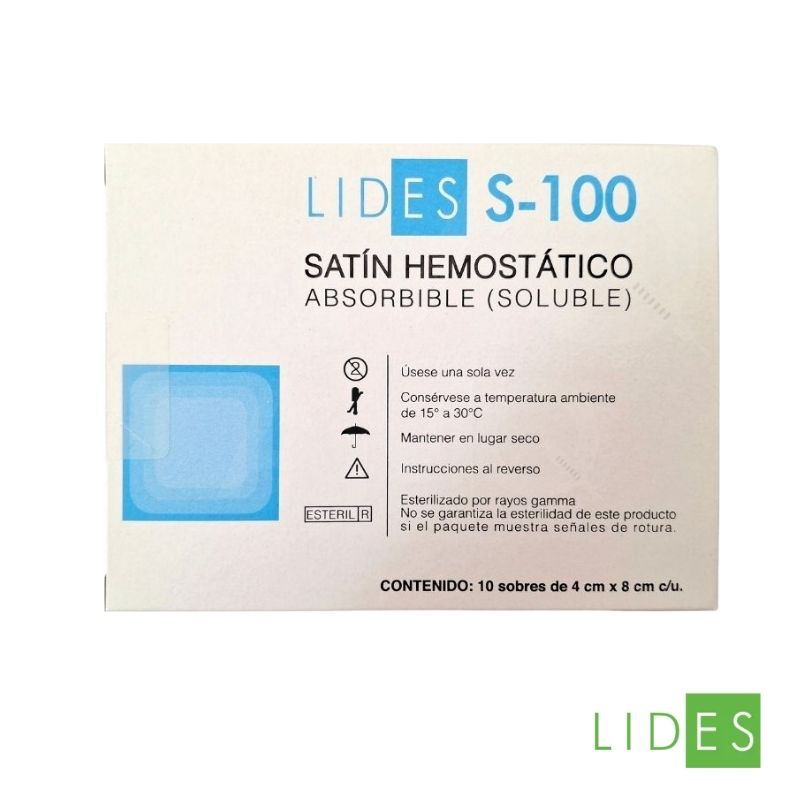 HEMOSTÁTICO SATÍN ABSORB SOLUBLE S-100, CAJA C/10 SOBRES.