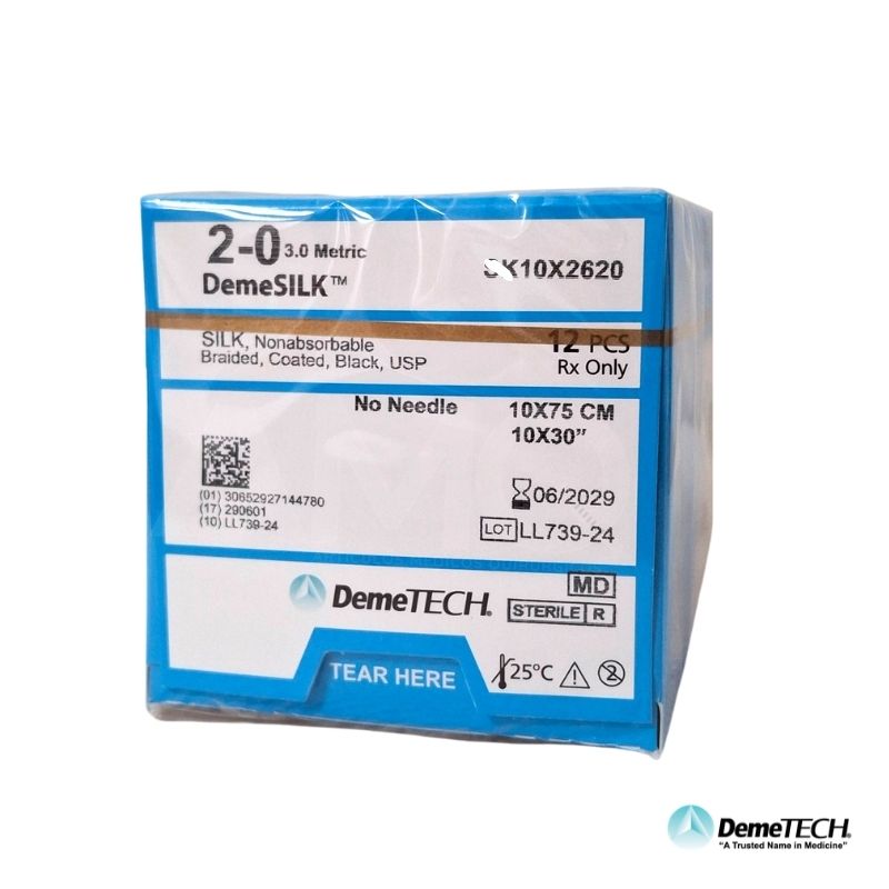 SEDA 2-0 SIN AGUJA 10 HEBRAS DE 75 CM COLOR NEGRO 10X75 CAJA C/12