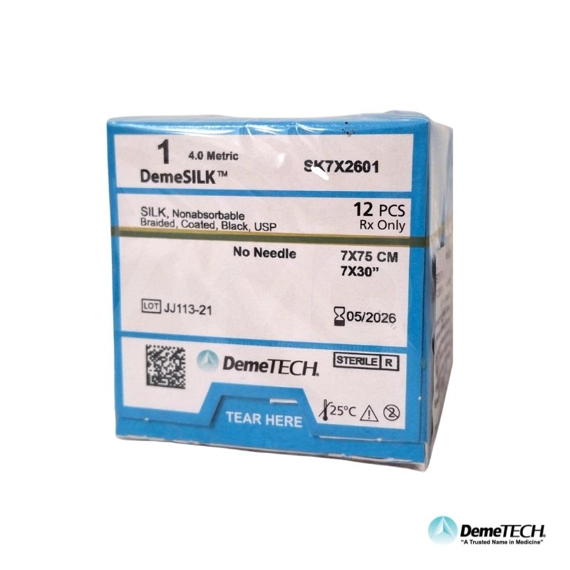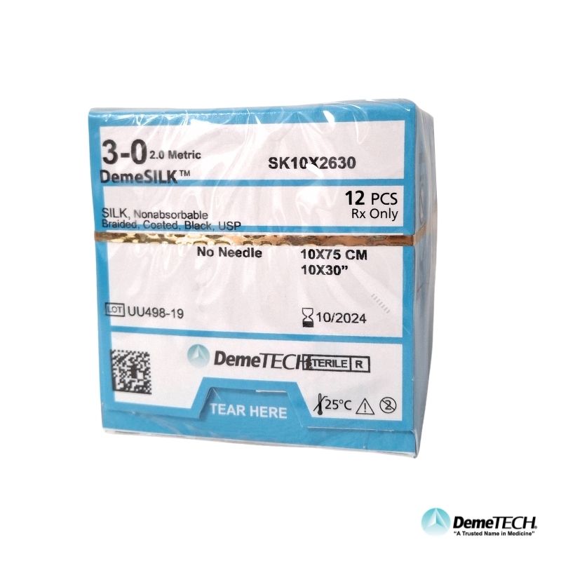 SEDA 3-0 SIN AGUJA 10 HEBRAS DE 75 CM COLOR NEGRO 10X75 CAJA C/12