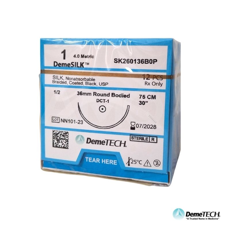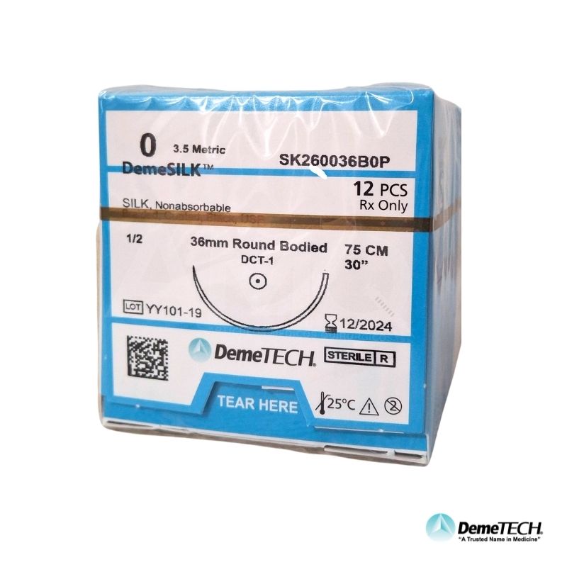 SEDA 2-0 AGUJA AHUSADA 36 MM 1/2 CIRCULO HEBRA DE 75 CM COLOR NEGRO CAJA C/12