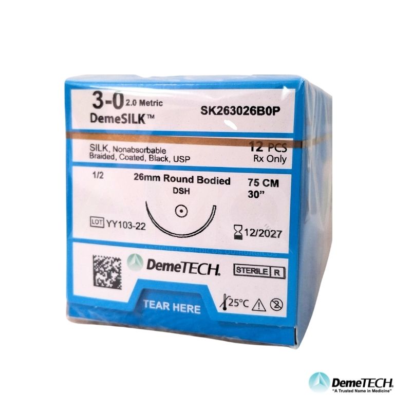 SEDA 3-0 AGUJA AHUSADA 26 MM 1/2 CIRCULO HEBRA DE 75 CM COLOR NEGRO CAJA C/12