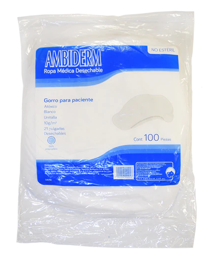 GORRO PARA PACIENTE BLANCO 10gr/m NO ESTÉRIL, BOLSA CON 100 PIEZAS