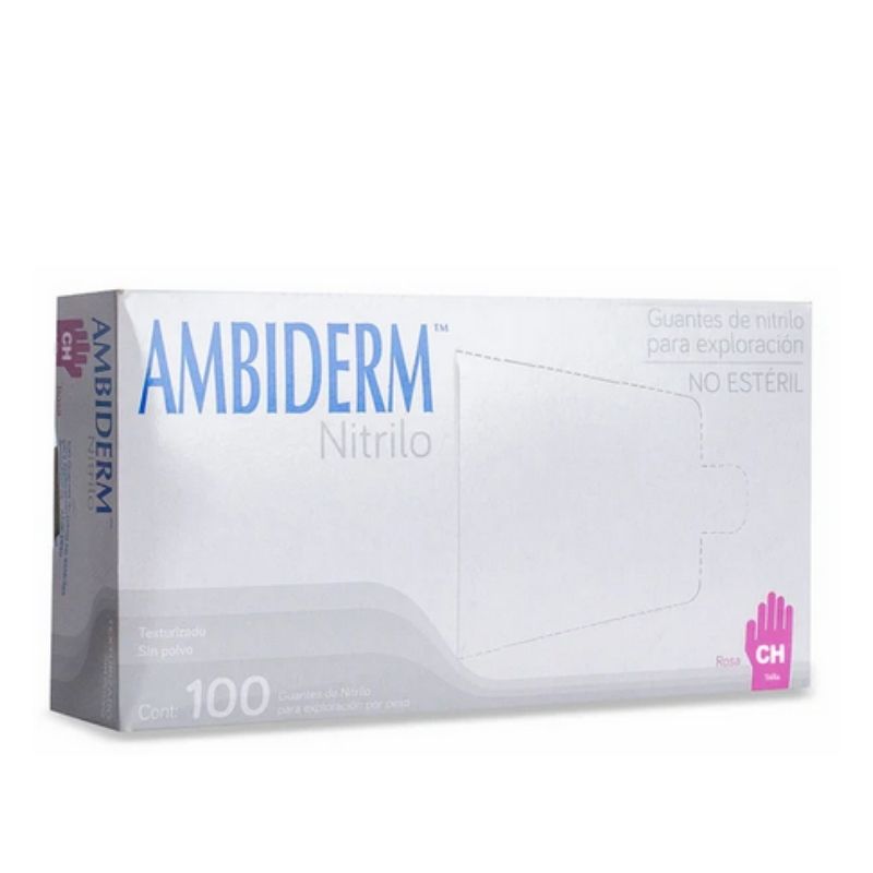 GUANTE AMBIDERM NITRILO ROSA CHICO, CAJA C/100 PIEZAS.