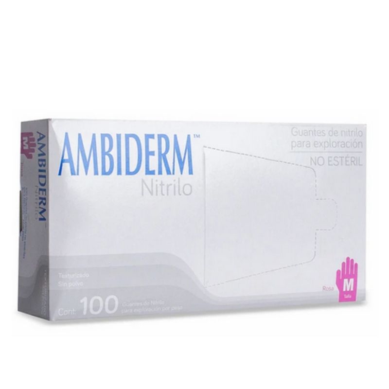 GUANTE AMBIDERM NITRILO ROSA MEDIANO, CAJA C/100 PIEZAS.