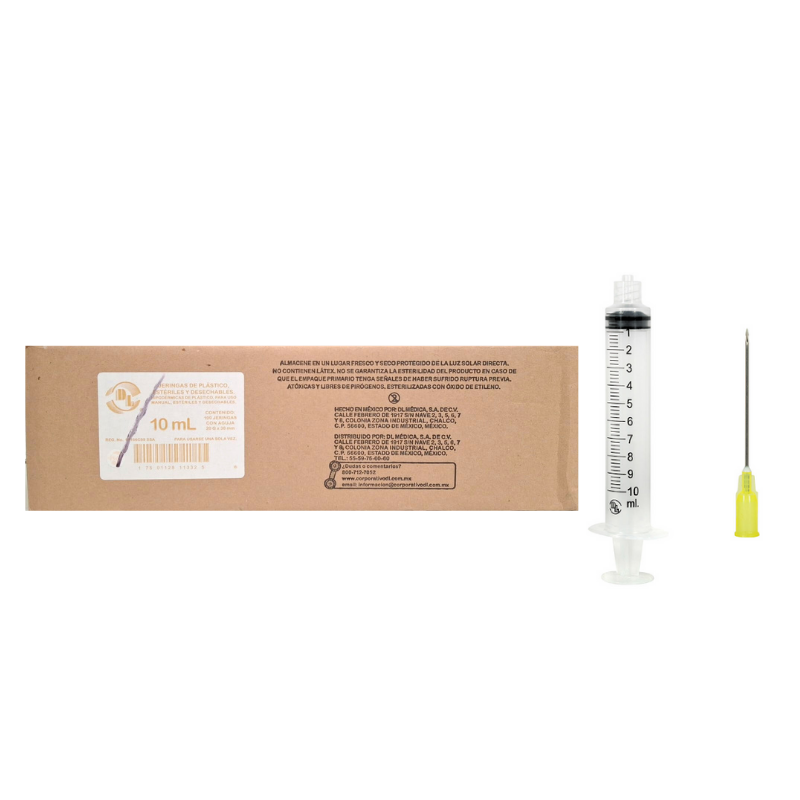 JERINGA 10 ML. CON AGUJA 20GX38, CAJA C/100 PZS.