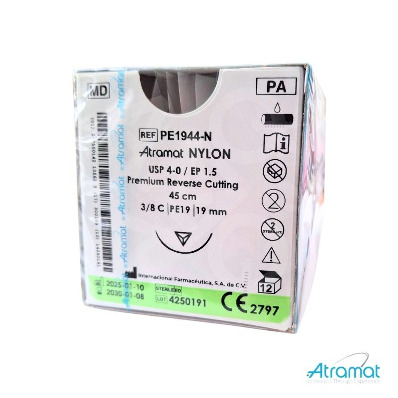 NYLON NEGRO USP 4-0, 45 CM AGUJA PE-19 REVERSO CORTANTE PREMIUM 19 MM 3/8CIRCULO