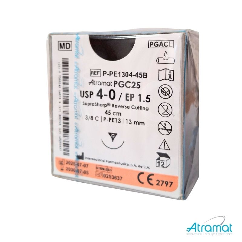 PGC25 INCOLORO USP 4-0, 45 CM AGUJA P-PE-13 REVERSO CORTANTE SUPRA-SHARP 13 MM 3/8 CIRCULO