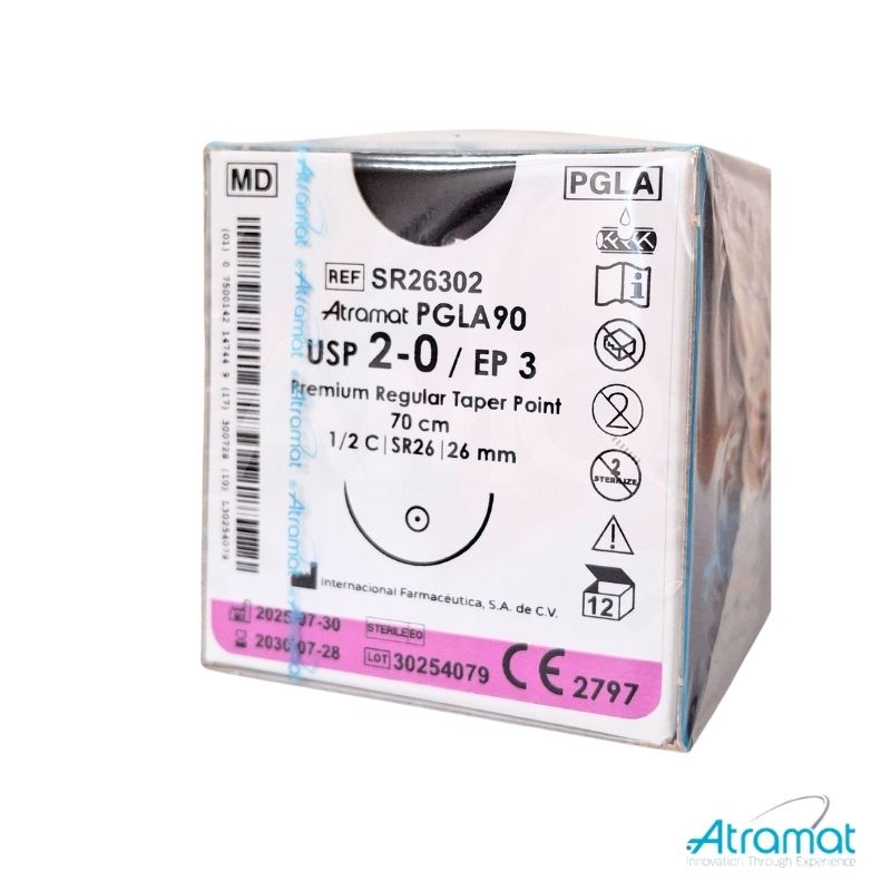 PGLA90 VIOLETA USP 2-0, 70 CM AGUJA SR-26 AHUSADA REGULAR PREMIUM 26 MM 1/2 CIRCULO