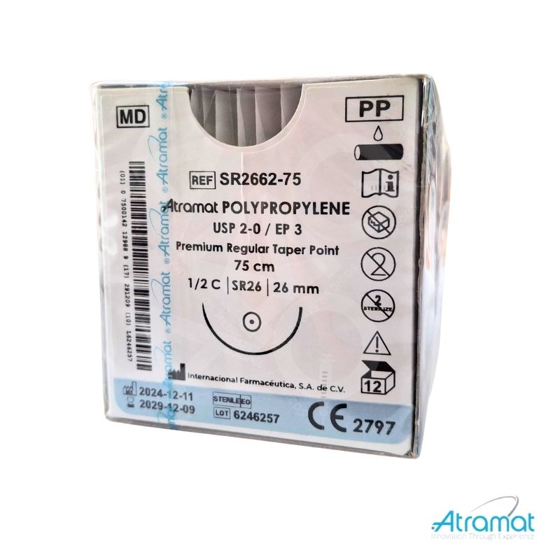 POLIPROPILENO AZUL USP 2-0, 45 CM AGUJA PE-26 REVERSO CORTANTE PREMIUM 26 MM 3/8 CIRCULO