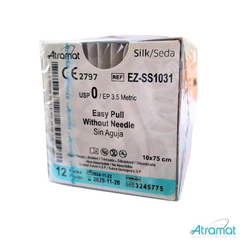 SEDA NEGRA USP 0, 10 X 75CM SIN AGUJAEASY PULL 12 SOBRES