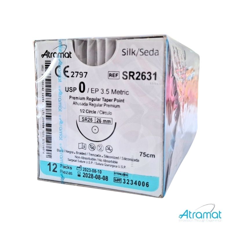 SEDA NEGRA USP 0, 75 CM AGUJA SR-26AHUSADA REGULAR PREMIUM 26 MM 1/2 CIRCULO