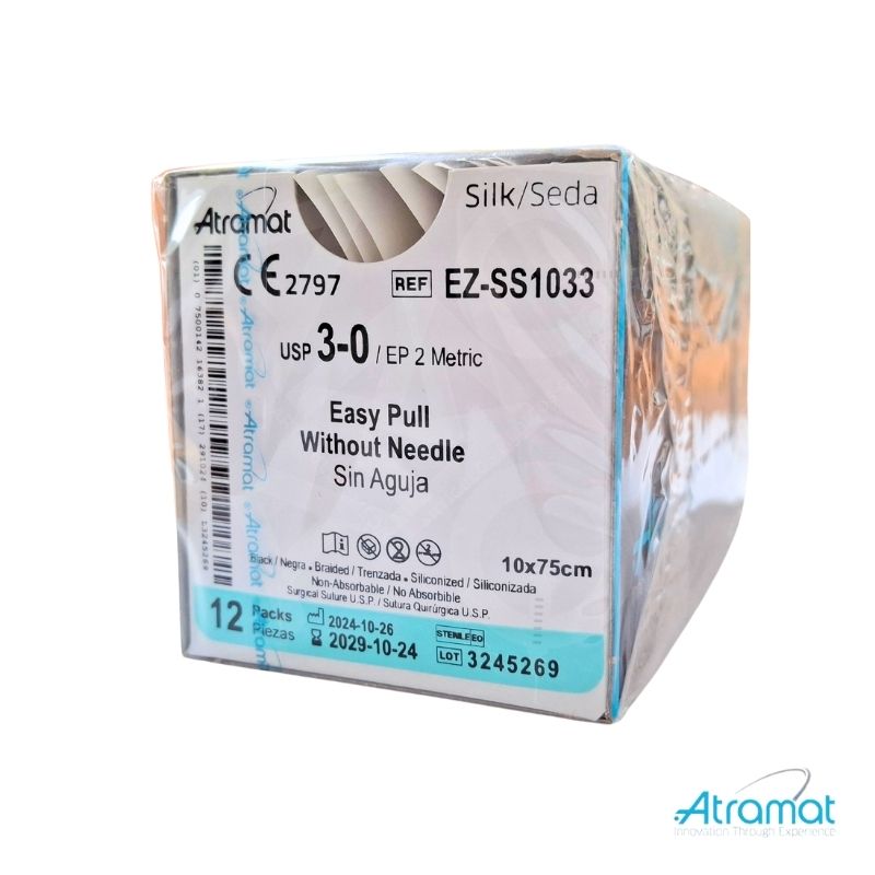 SEDA NEGRA USP 3-0, 10 X 75CM SIN AGUJA EASY PULL 12 SOBRES
