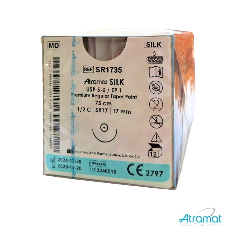 SEDA NEGRA USP 5-0, 75 CM AGUJA SR-17AHUSADA REGULAR PREMIUM 17 MM 1/2 CIRCULO
