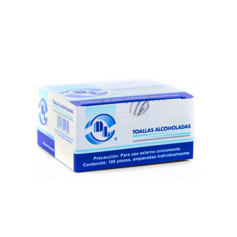 TOALLITAS ALCOHOLADAS, CAJA CON 100 PIEZAS.